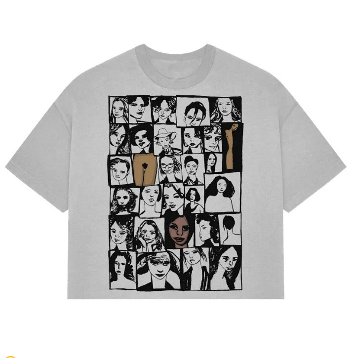 Street Unisex T-shirt Funny Anime Face Pattern Street Tee