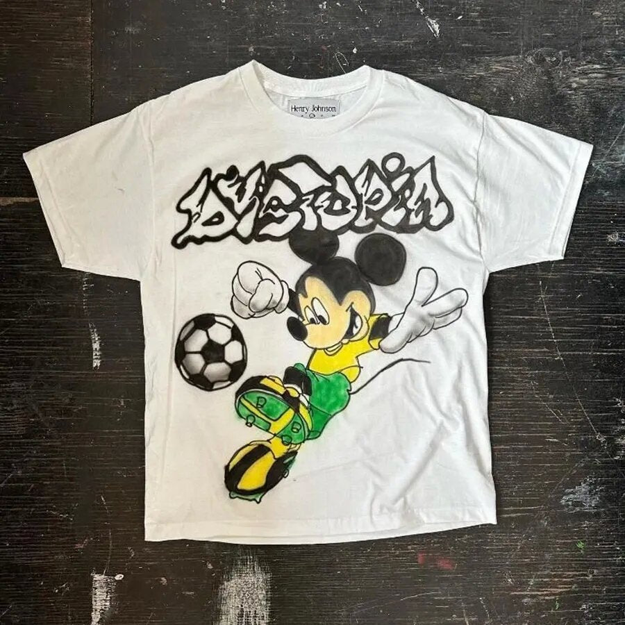 Street Unisex T-shirt 'Football Mickey Mouse' Cartoon Pattern Street Tee