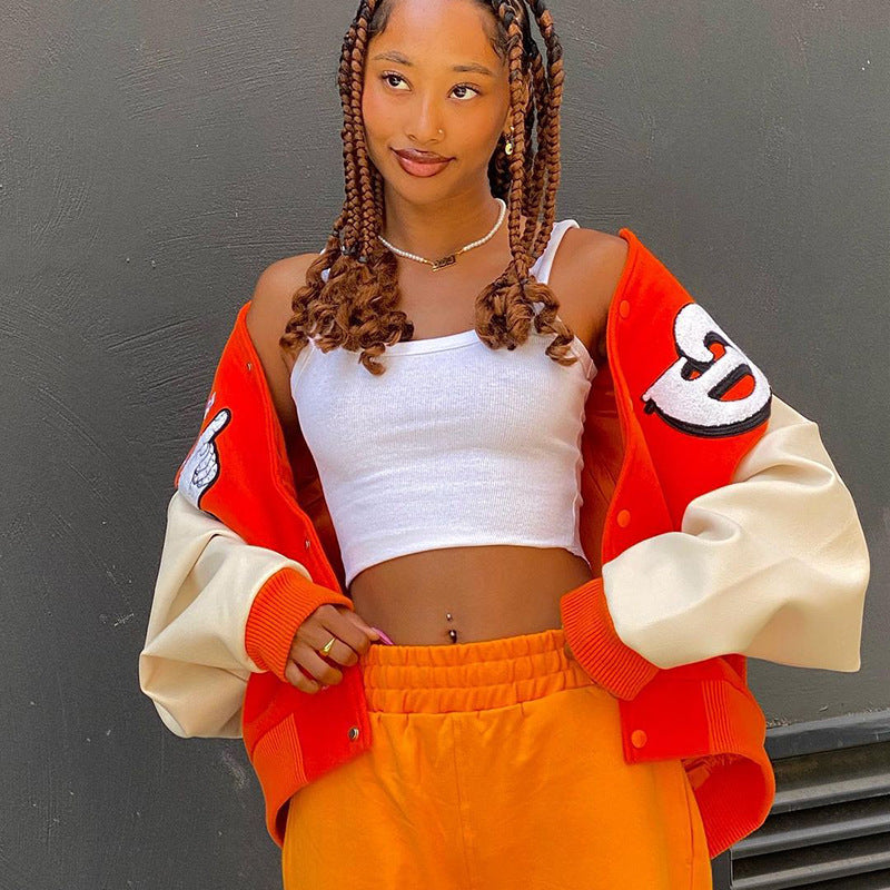 Cheerleader Letterman Jacket Letter Print Loose Single-Breasted Baseball Uniform