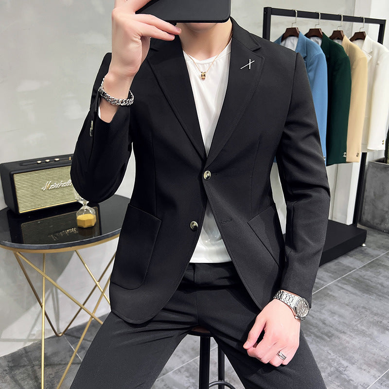 Men Suit Simple Two-Piece Set Slim-Fit Beaded Line