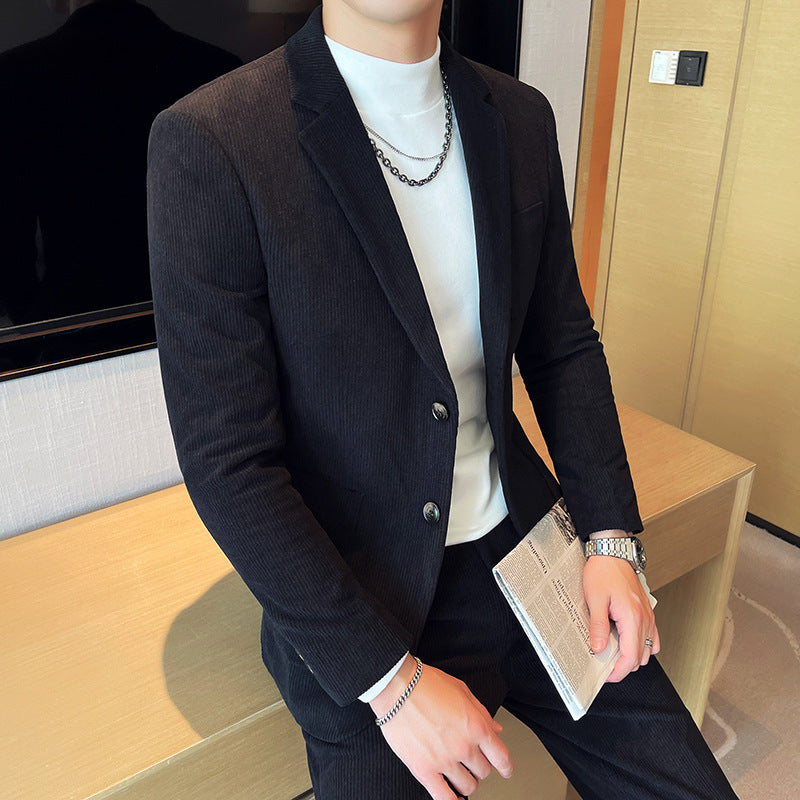 Men Suit Slim-Fit Corduroy Two-Piece Set with Two Buttons