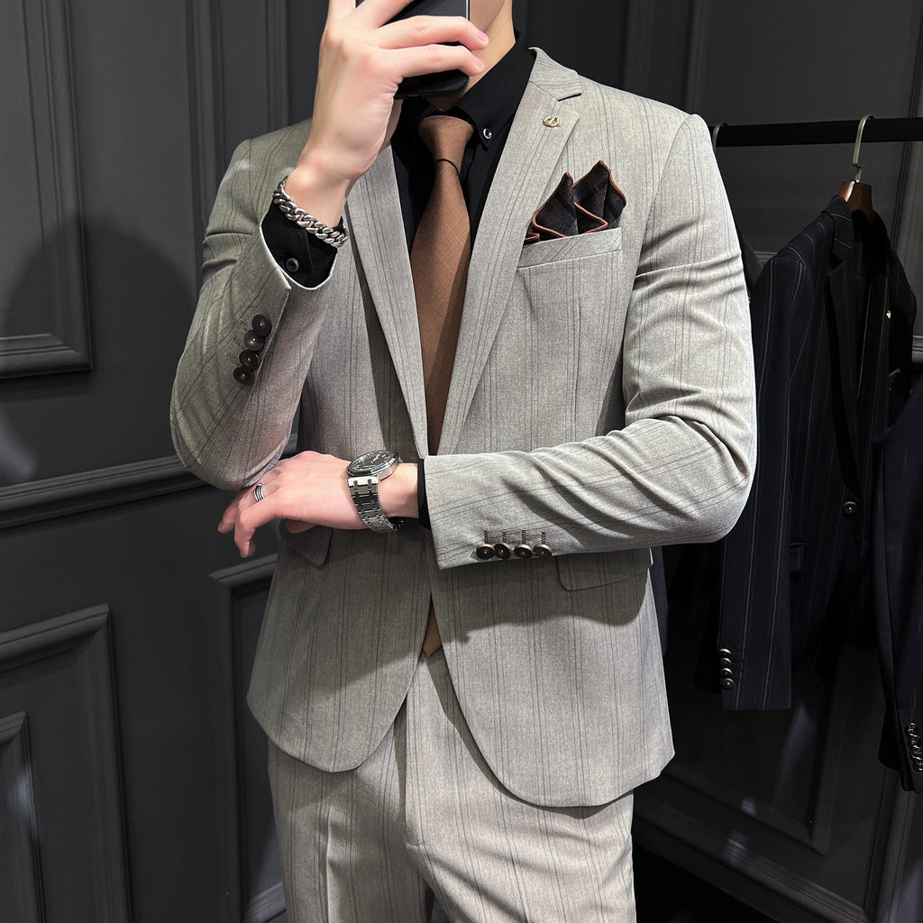 Men Suit Slim Elastic Wide Stripe Two-Piece Set