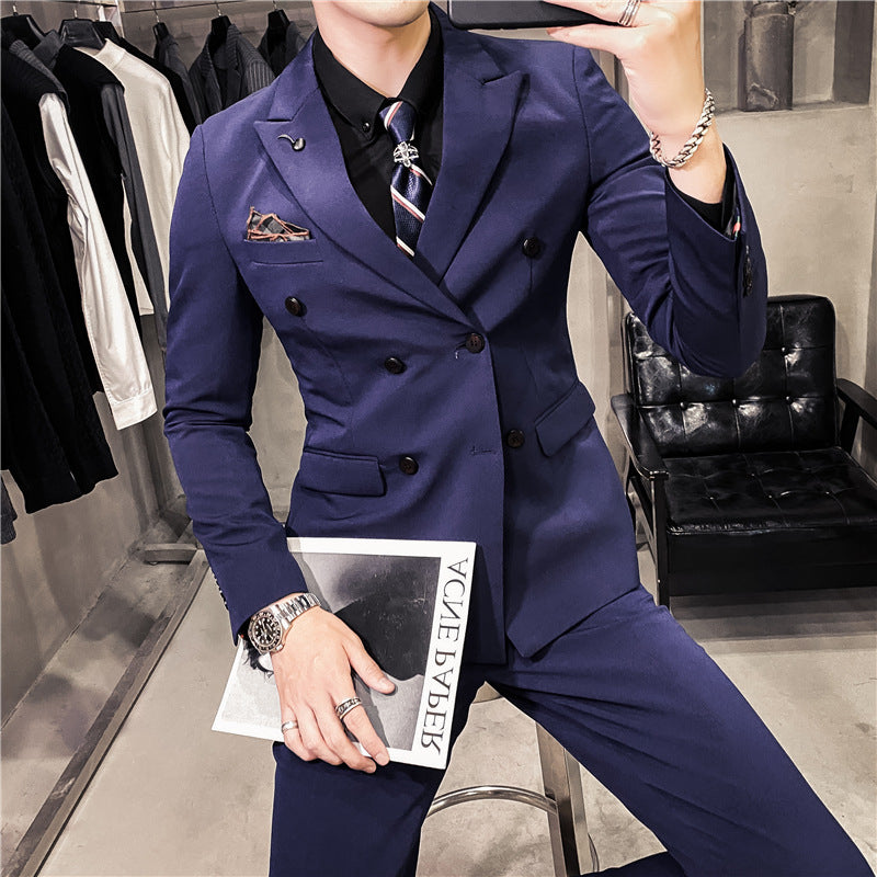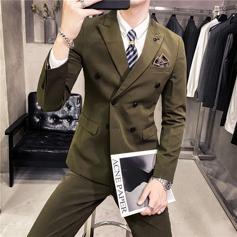 Men Suit Three-Piece Set Slim Double-Breasted