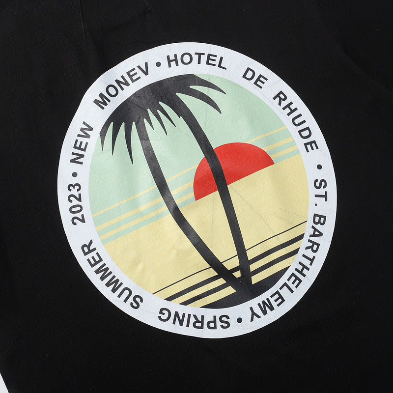 Rhude T Shirt Sunset Coconut Alphabet Print Short Sleeve T-Shirt