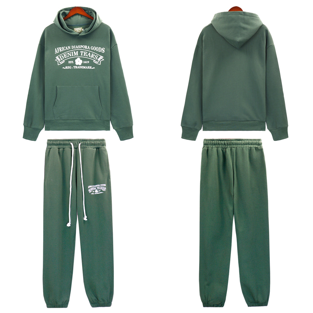 Denim Tears Hoodie & Sweatpants 2 Piece Set Kapok Letter Hooded Sweater Trousers Sports Suit