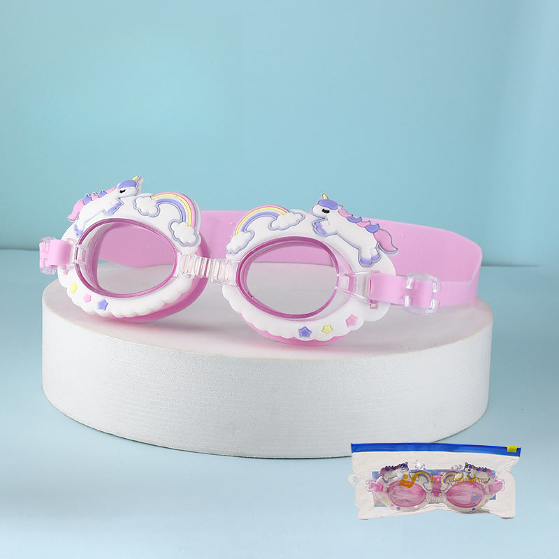 Swimming Goggles Rainbow Horse Cartoon Goggles Swimming Cap 2-piece Set