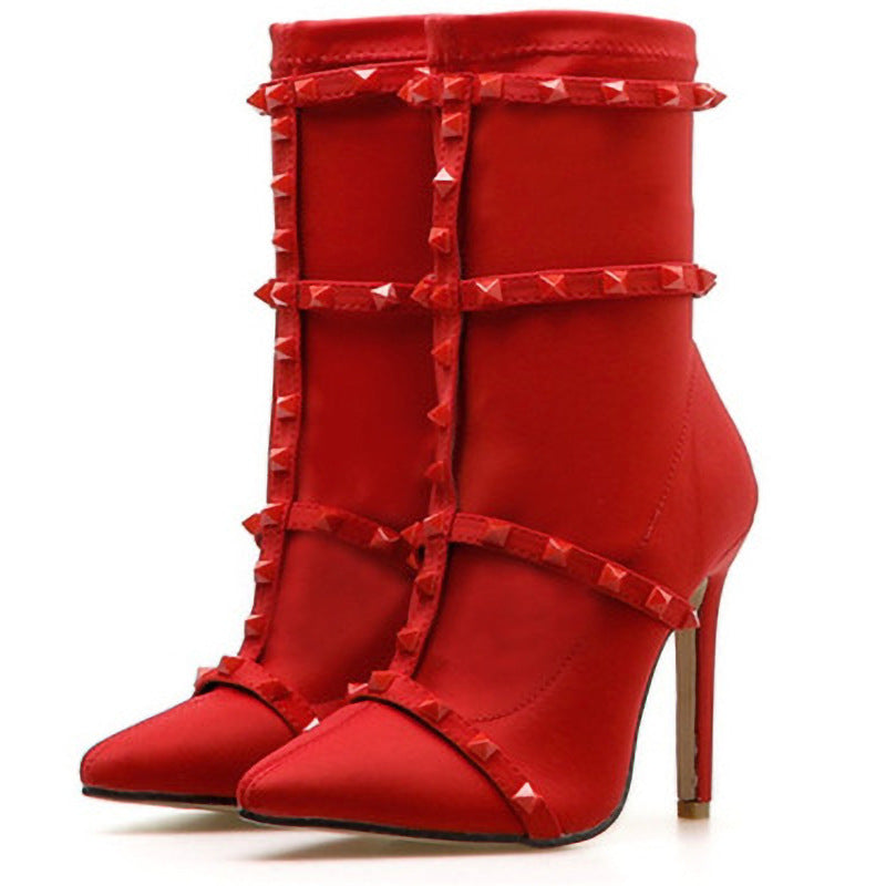 Coachella Festival Boots Autumn and Winter Fashion Stiletto Heel Rivet Side Zipper Large Size Boots