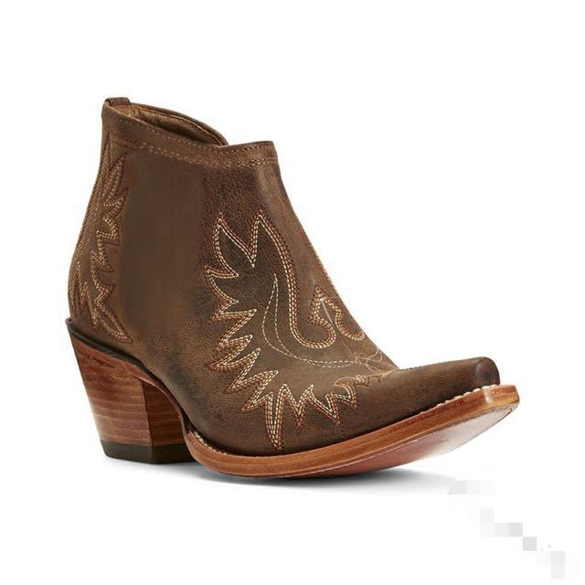 Coachella Cowboy Boots Autumn and Winter Embroidery Pointed Toe Chunky Heel Martin Boots