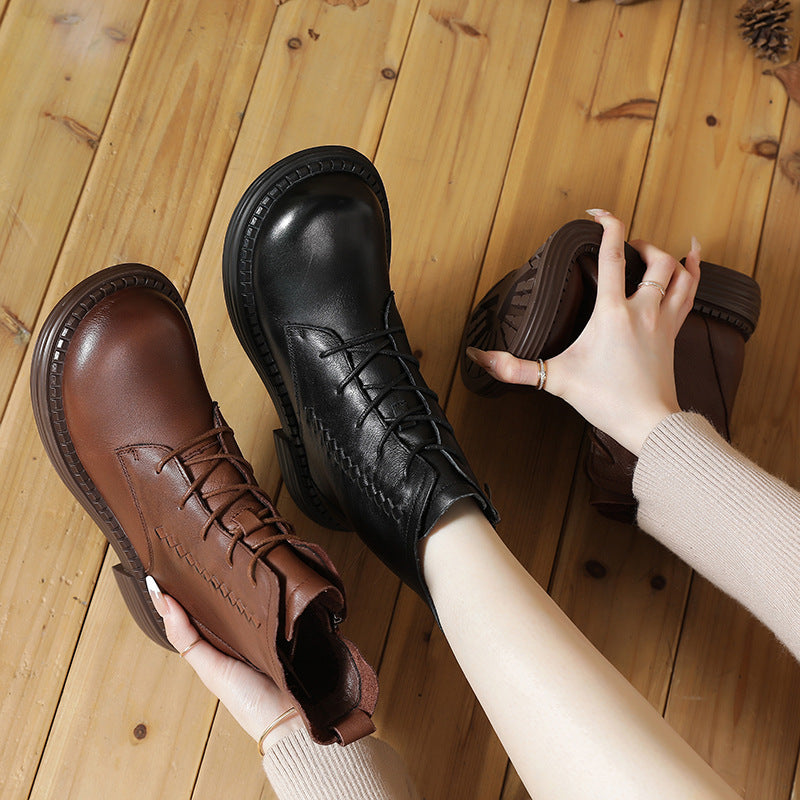 Coachella Cowboy Boots Autumn and Winter Round Head Low Tube Flat Heel Vintage Martin Boots