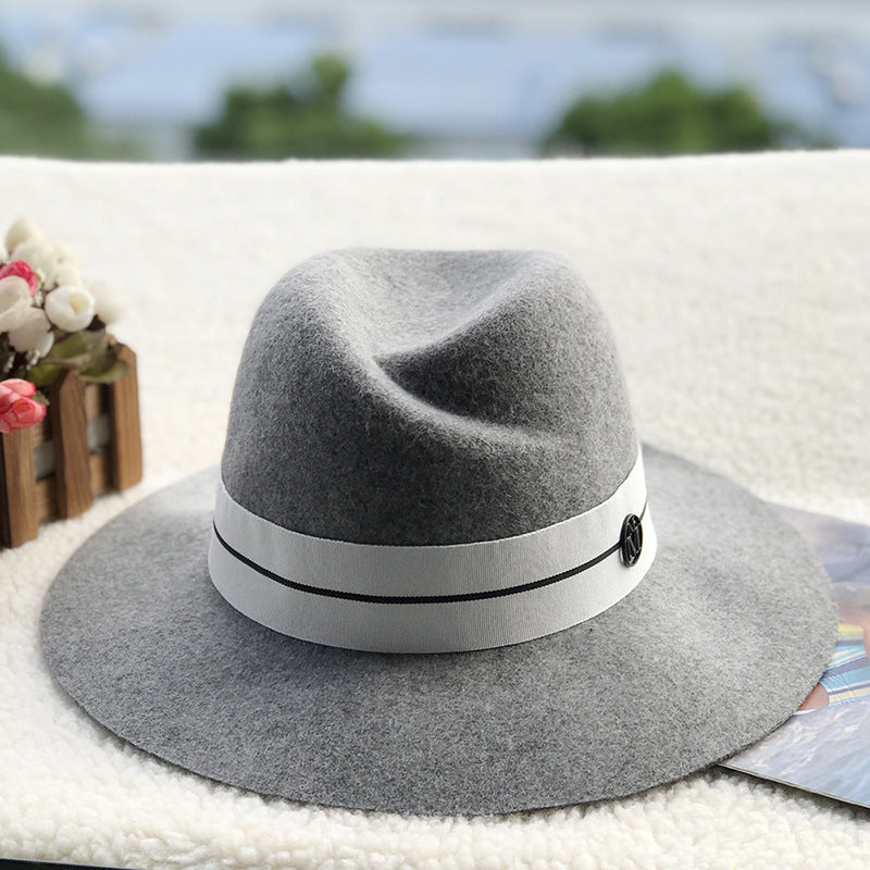 Fedora Hat Wool Autumn and Winter Flat Brim Sun Protection Tie-Dye Outdoor Top Hat Fedora Hat Generation