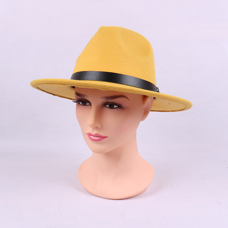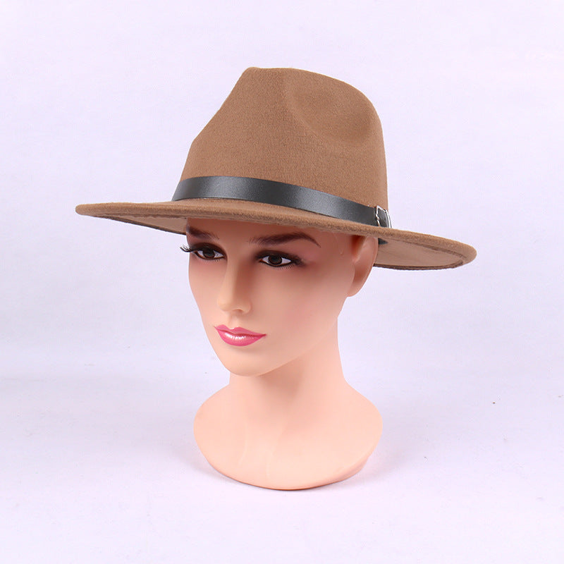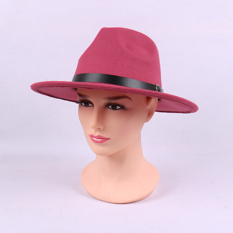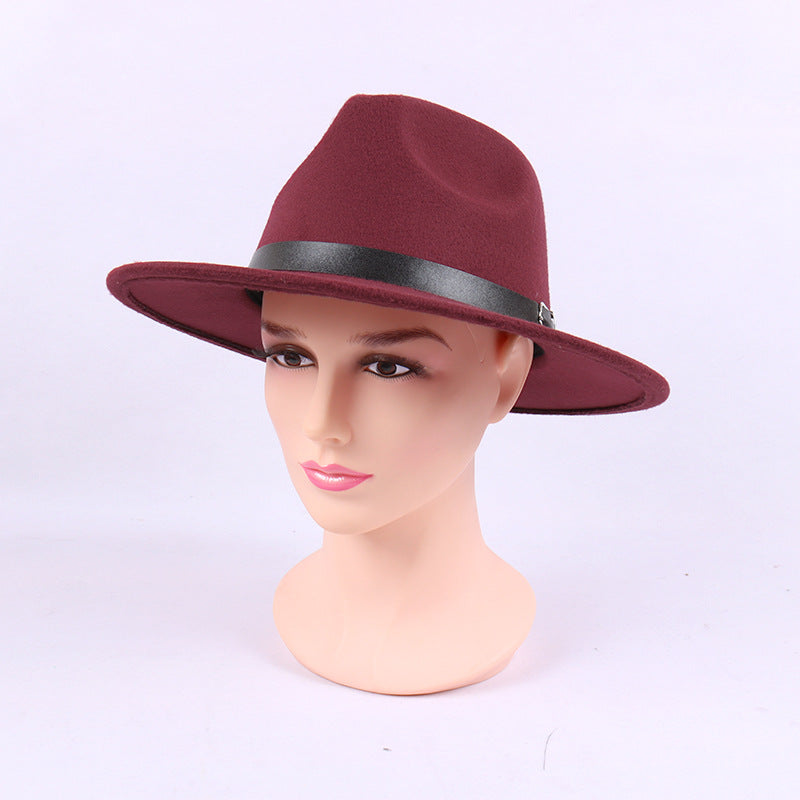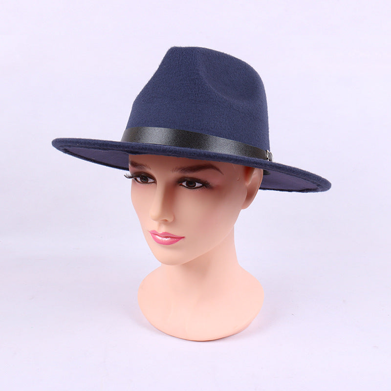 Fedora Hat Solid Color Fur Felt Hat British Retro Fedora Hat Men and Women Flat Brim Gentlemen's Hat