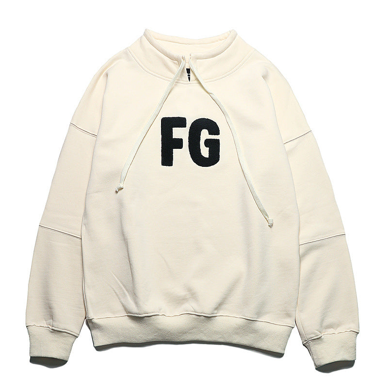 Kanye West Hoodie Embroidered Stand Collar Pullover Sweater Men's Fog Fleece Padded Coat