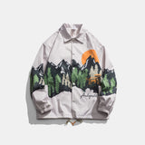 Men's Spring plus Size Retro Sports Jacket Men's Forest Sun Print Green Casual Jacket Men Coat