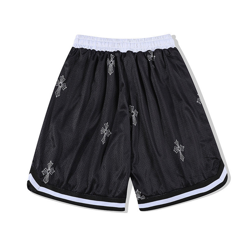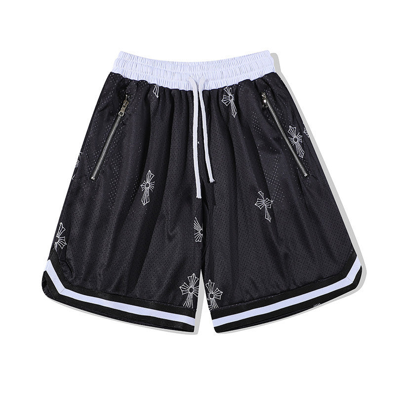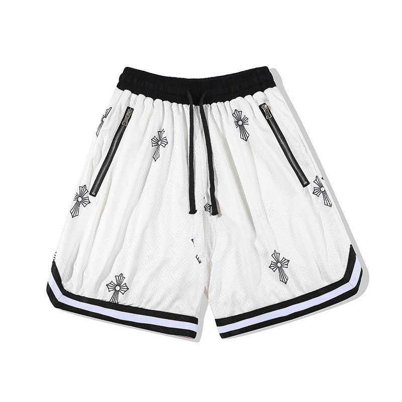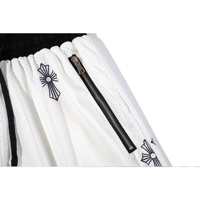 Basketball Shorts Fashion Zipper Loose Basketball Sports Fifth Pants High Street Cross Printed Mesh Casual Shorts